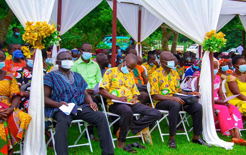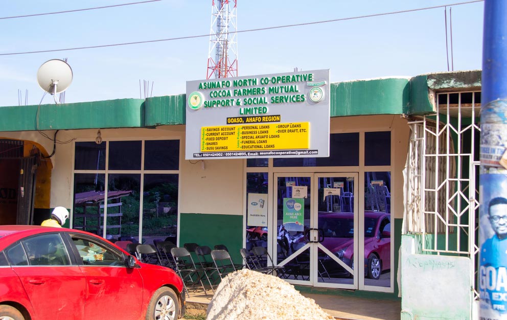 Our union consists of 75 cooperative communities in the Asunafo North municipality, located in the Ahafo region of Ghana. There are a total of 9,547 members—where the average median age is 40, though an increasing number (currently 1,945) are below 35—with over 19,052 farms.